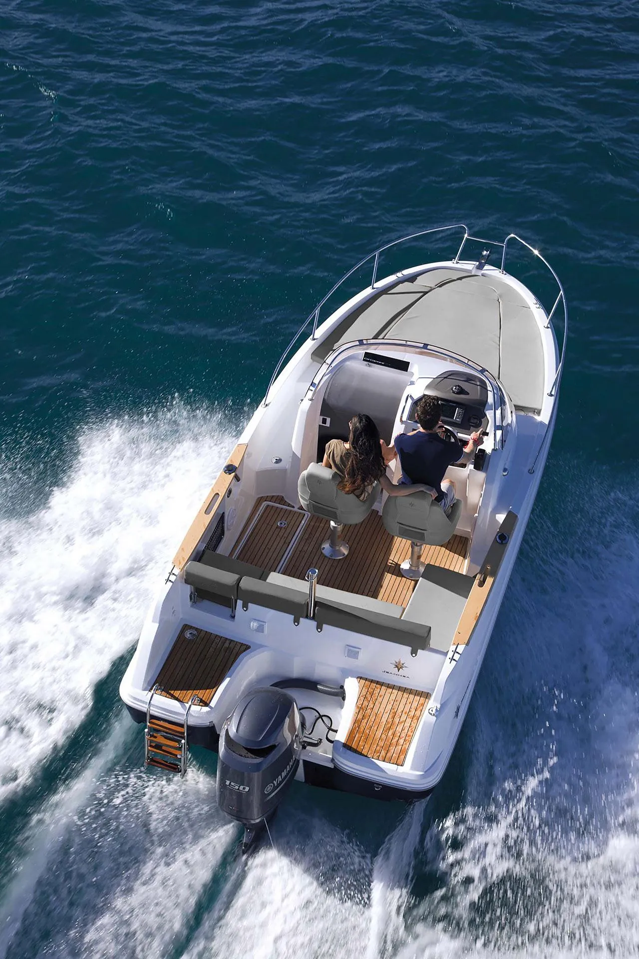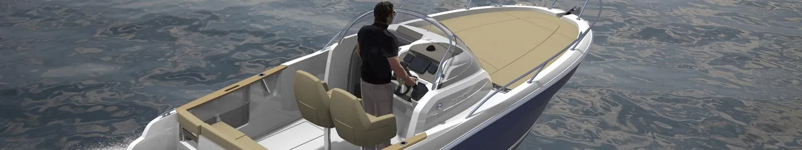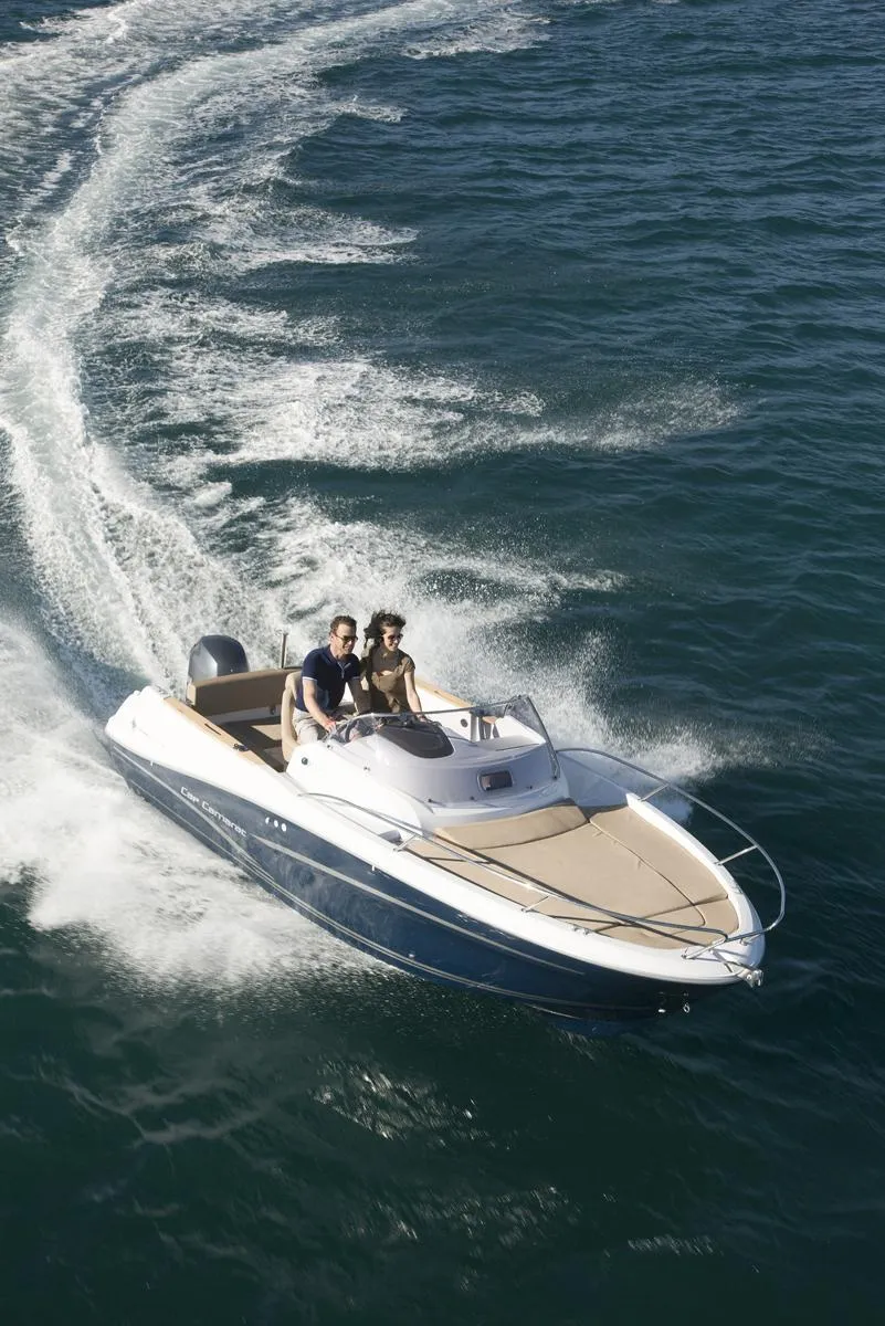 No matter what her dimensions may be, each Cap Camarat WA has always offered increased comfort on board. The Cap Camarat 6.5 WA does not deviate from this rule, and it features a superb design, directly inspired by that of the Cap Camarat 7.5 WA. With a robust, redesigned hull line, a sculpted console and an enhanced dashboard, the overall style is strengthened by design elements from the largest Cap Camarat.