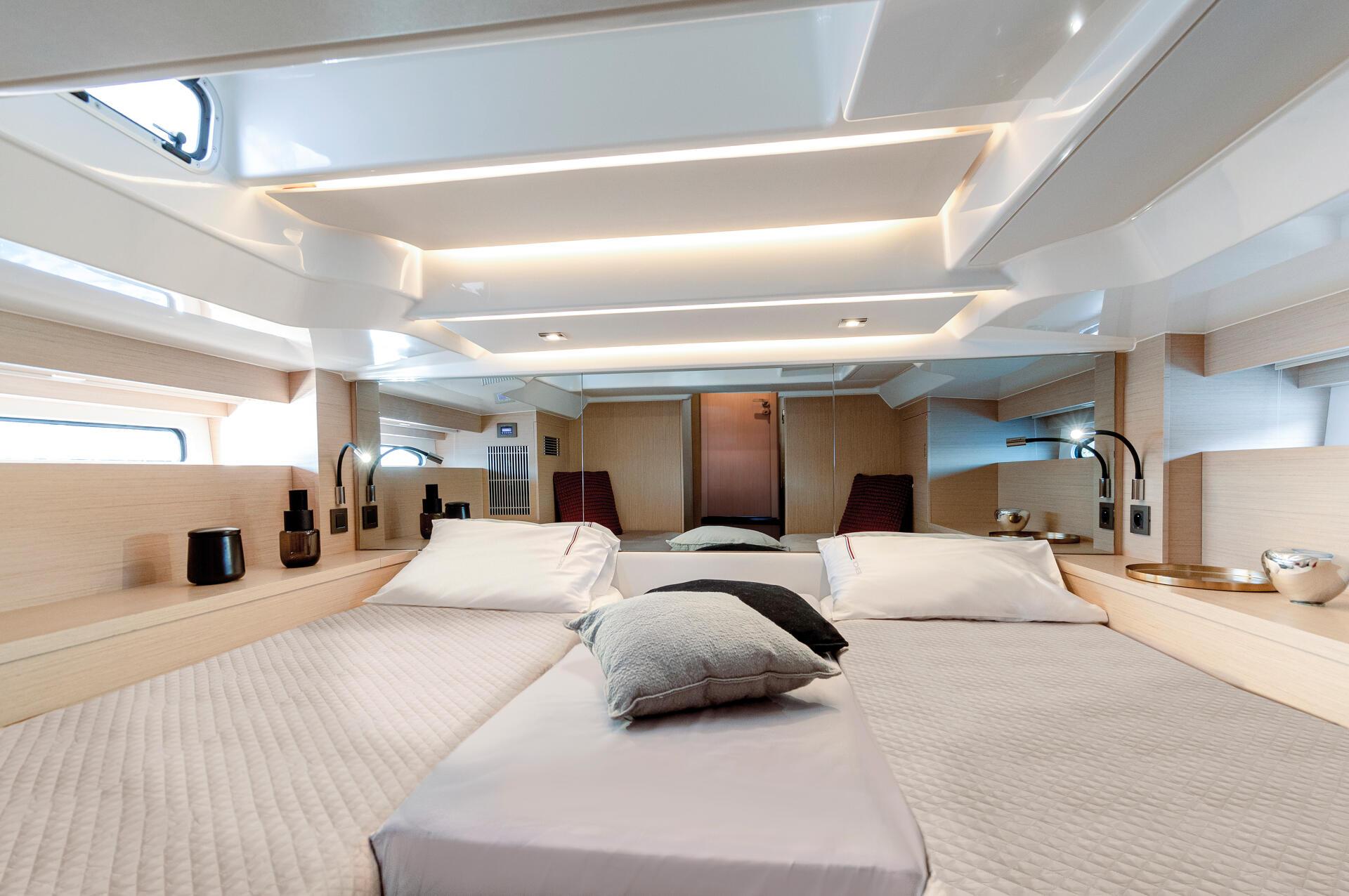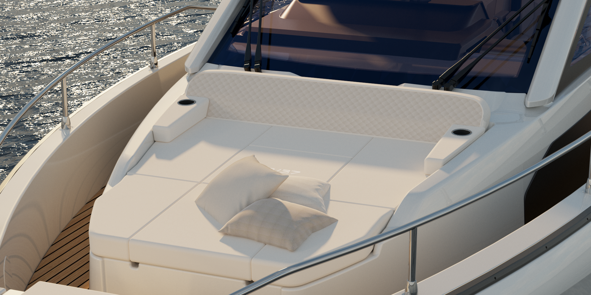 Resolutely turned toward the exterior, the DB/37 has the air of a party boat. Two modular bench seats comfortably accommodate eight people near a well-equipped central island galley, with: a stovetop, grill, sink, and refrigerator. For festive evenings and shared pleasures, this premium day boat also benefits from an interior layout adapted for cruising and more private moments. A soft, warm atmosphere graces the interior living spaces. A superb forward owner’s cabin, along with a vast aft guest cabin, a head compartment, and a breakfast point all promise comfort on board, fabulous nights on the water, and enchanted awakenings.