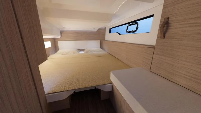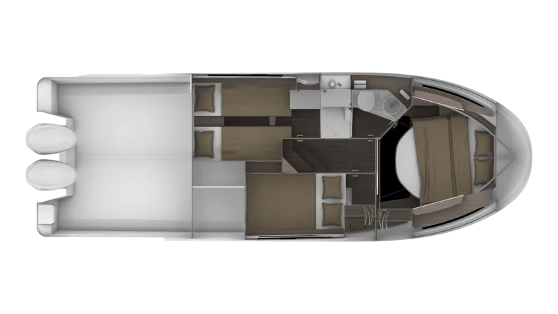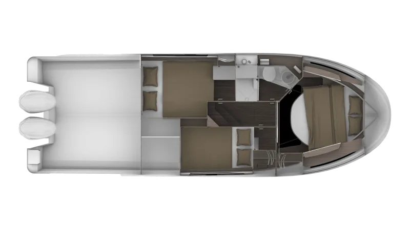 Her U-shaped saloon, in the place of the L-shaped saloon aboard the flybridge version, liberates space and presents an inviting living area, perfect for moments of relaxation.