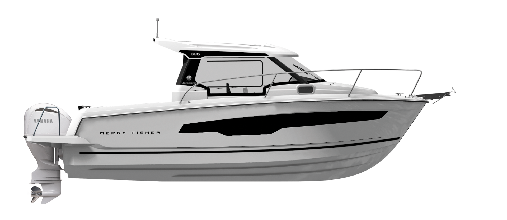 High-quality equipment makes the Merry Fisher 695 the perfect partner for your family outings at sea: large storage lockers, a small galley with a refrigerator, two forward berths, a saloon that converts into an additional berth, a separate marine head under the helm station, an L-shaped exterior cockpit, and wide swim platforms… And there is one more advantage to this model, already capable of so much: it is trailerable and can easily be stored in dry dock storage.