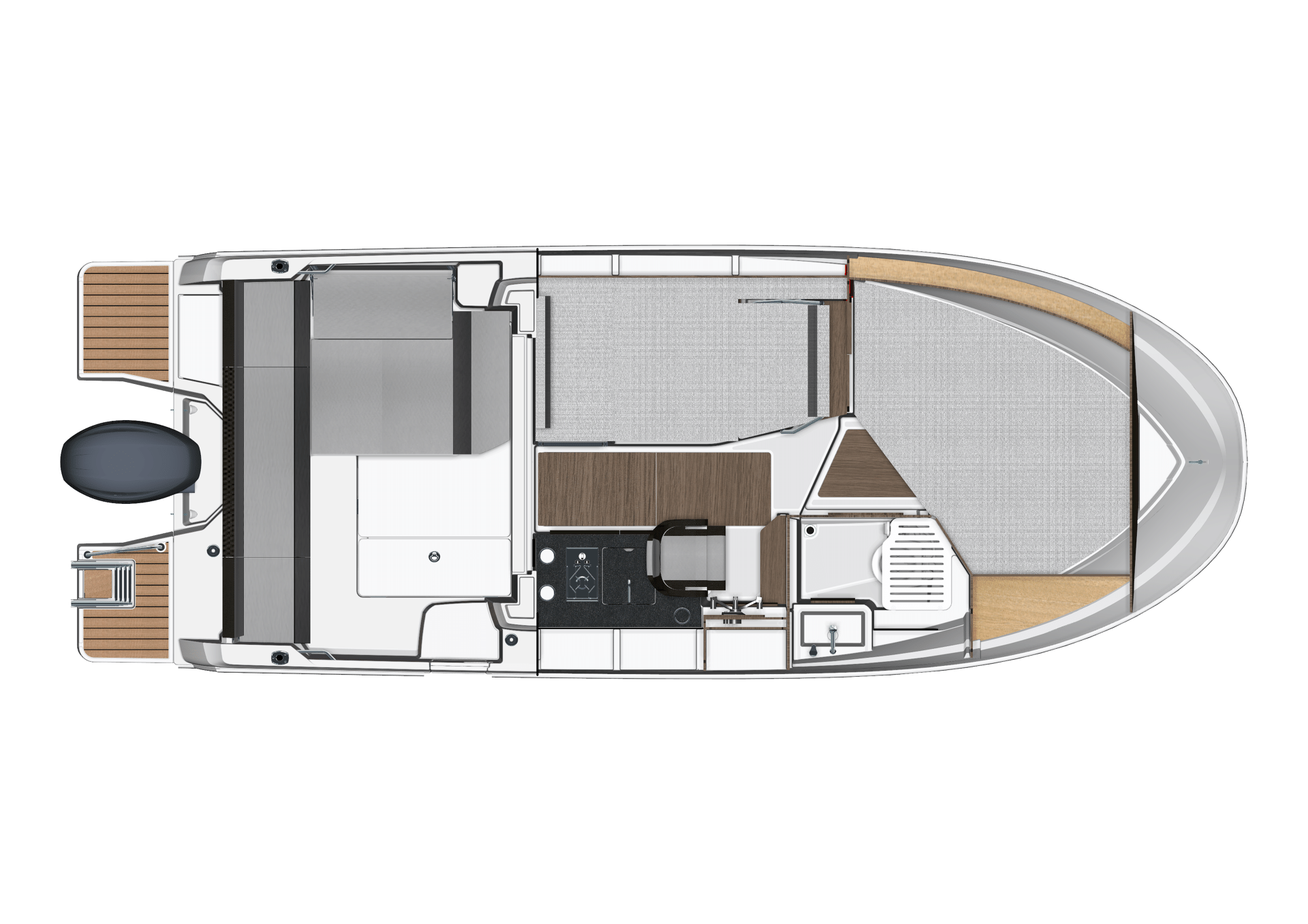 Comfortable, versatile, and cleverly designed, the Merry Fisher 795 is the boat for weekends on the water with family and friends. Boasting a large forward double berth, it also accommodates two additional guests in the saloon, which transforms into a berth. Equipped with a shower and head compartment, as well as a galley, this model enables you to enjoy breakfast on board and a 360° view of the sea, all while sheltered within the well-ventilated saloon.
