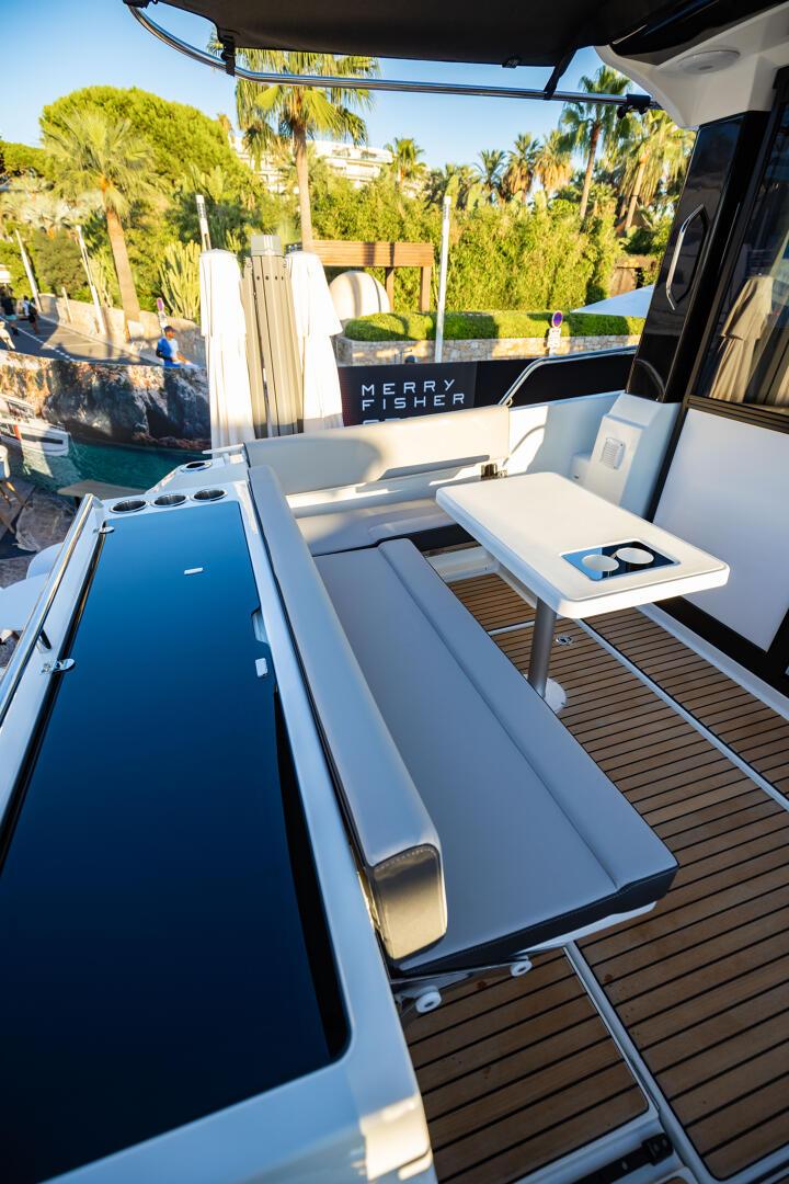 The Merry Fisher 895 Sport Series 2 boasts an even bolder, more intrepid look: her inverted windscreen, long windows in the hull, black trim on the coachroof, and hull colours reinforce this identity. Yet this inviting model is also conducive to entertaining and relaxing together. The forward cockpit is a true separate saloon, while the bright, perfectly ventilated cabins invite you to enjoy a peaceful, well-deserved rest.