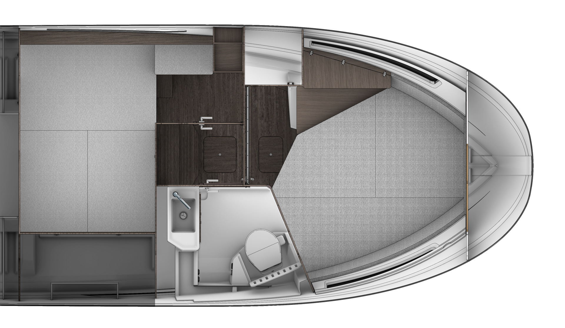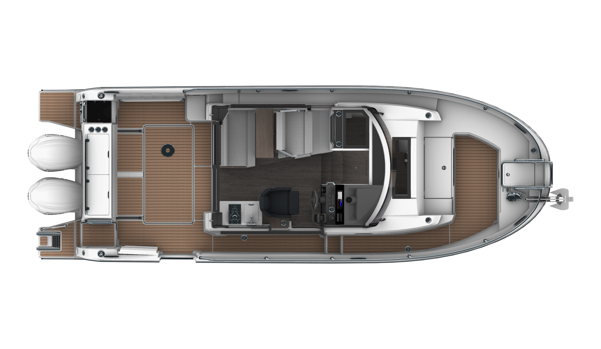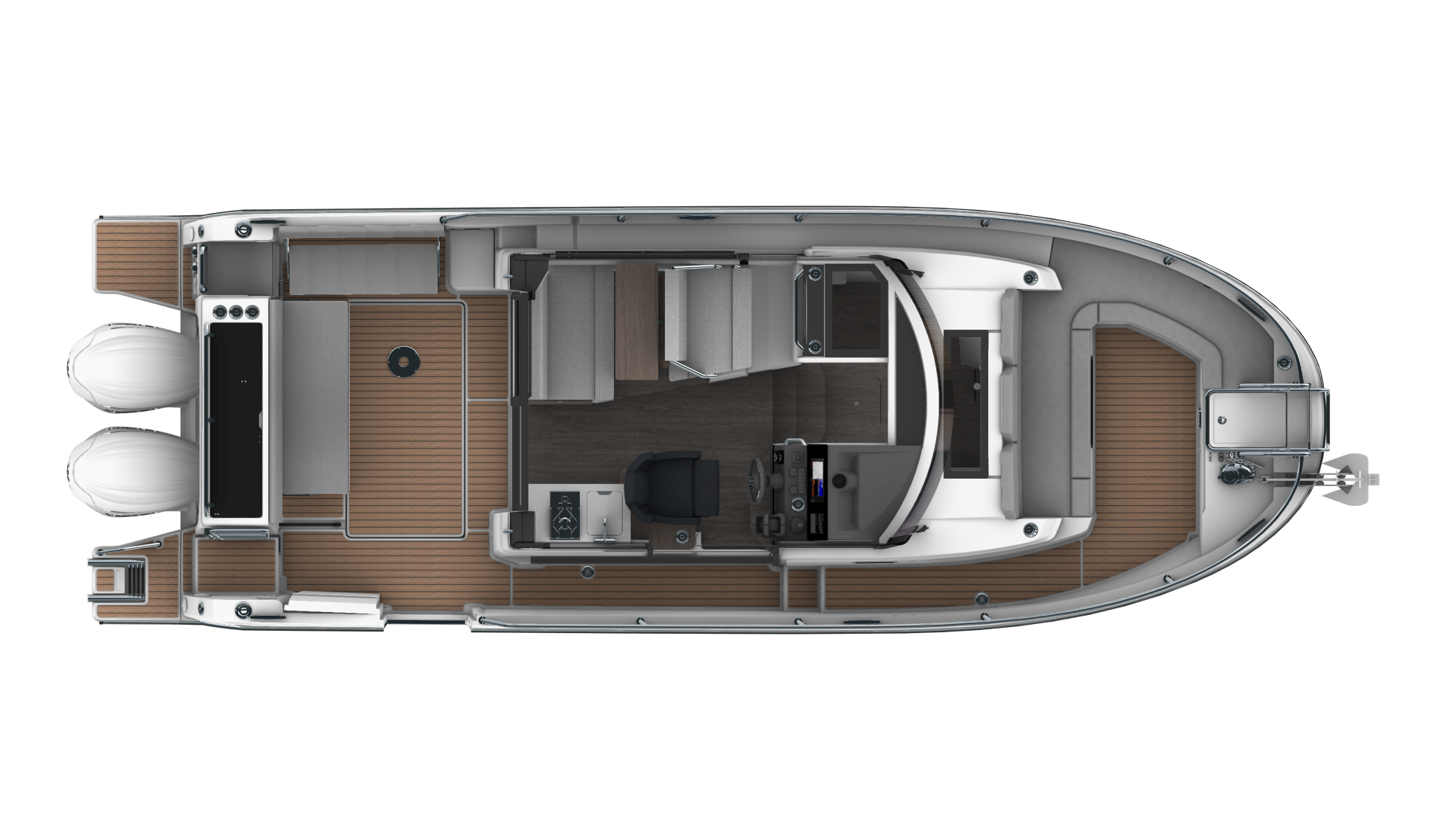 - A large aft module presents multiple options, in function with your preferences: storage, galley, grill, livewell…