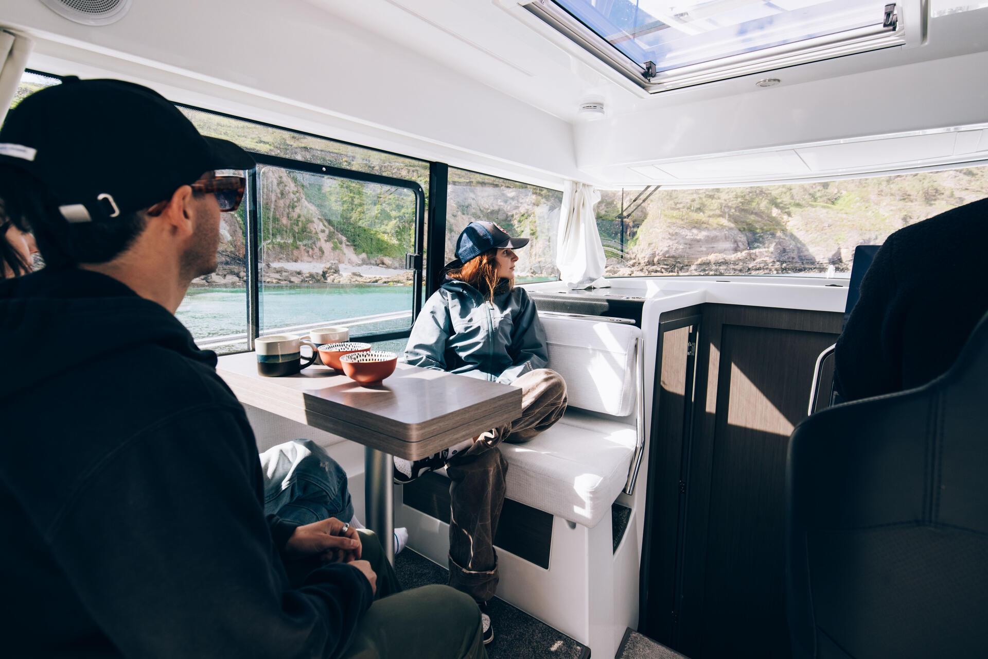 - Entirely modular, with folding seats, and featuring copious storage, the spacious aft cockpit facilitates the preparation of equipment.