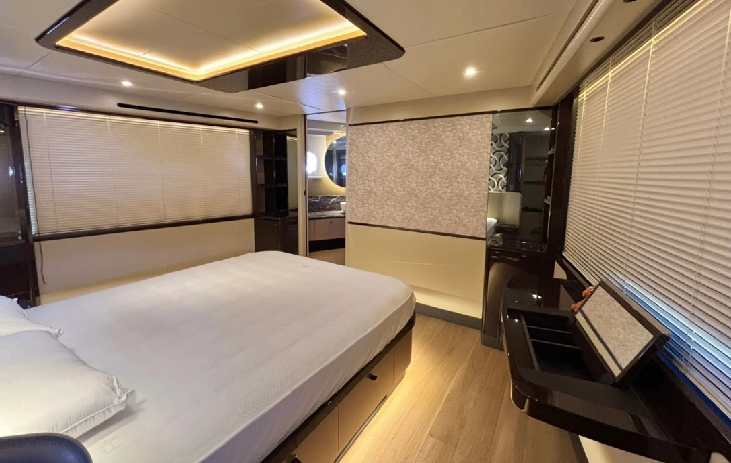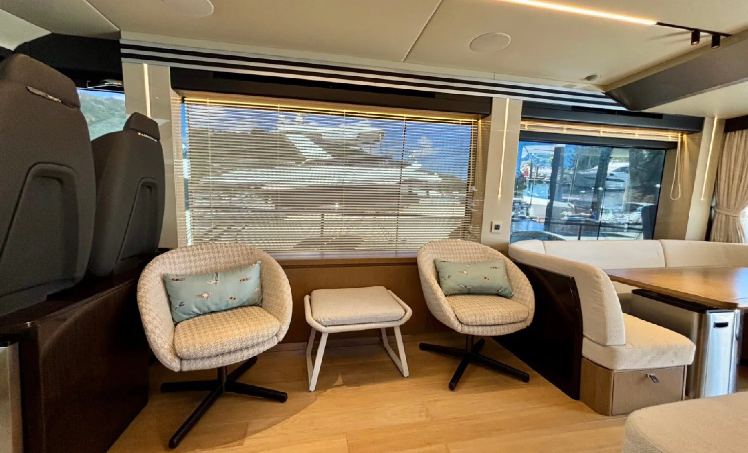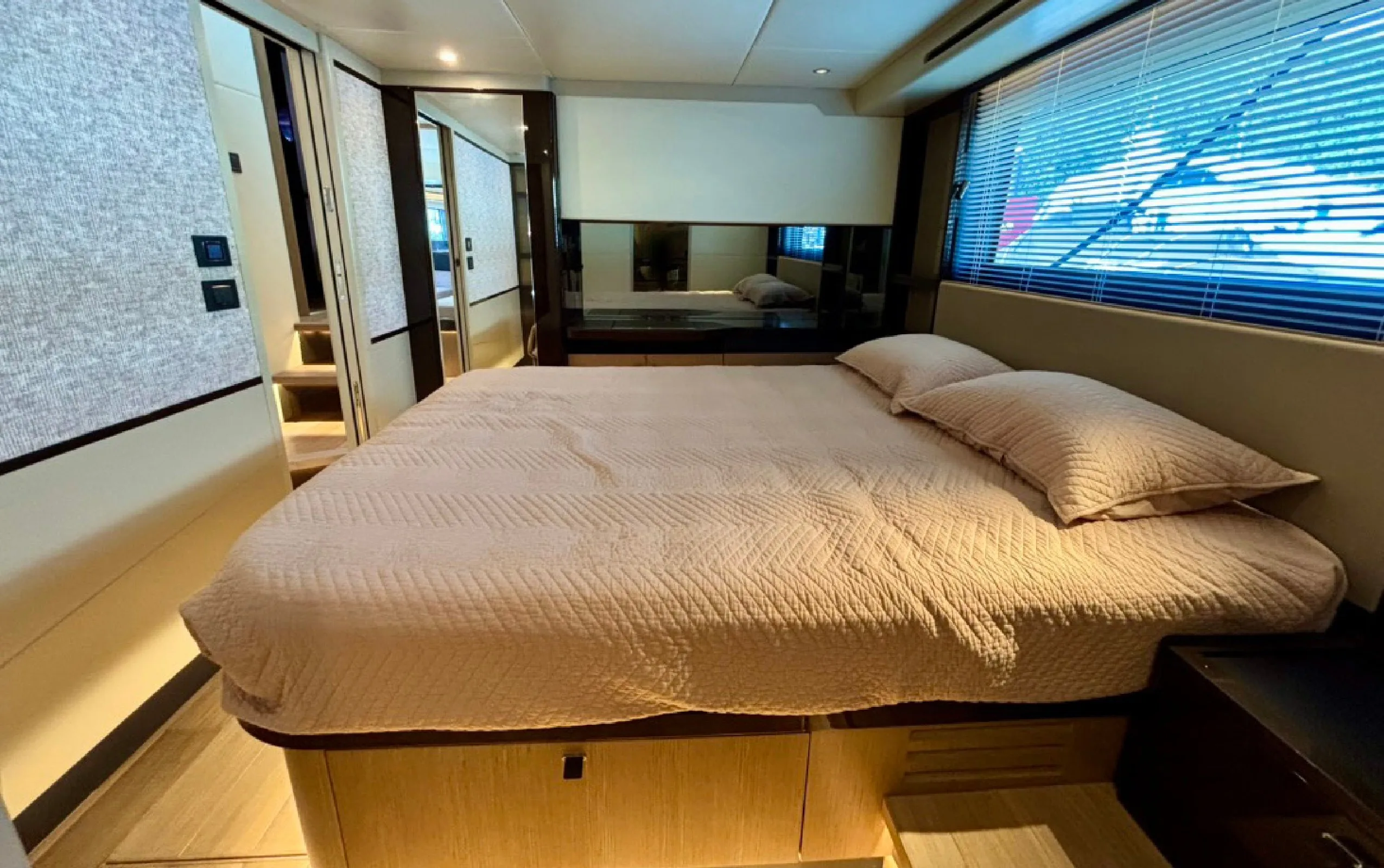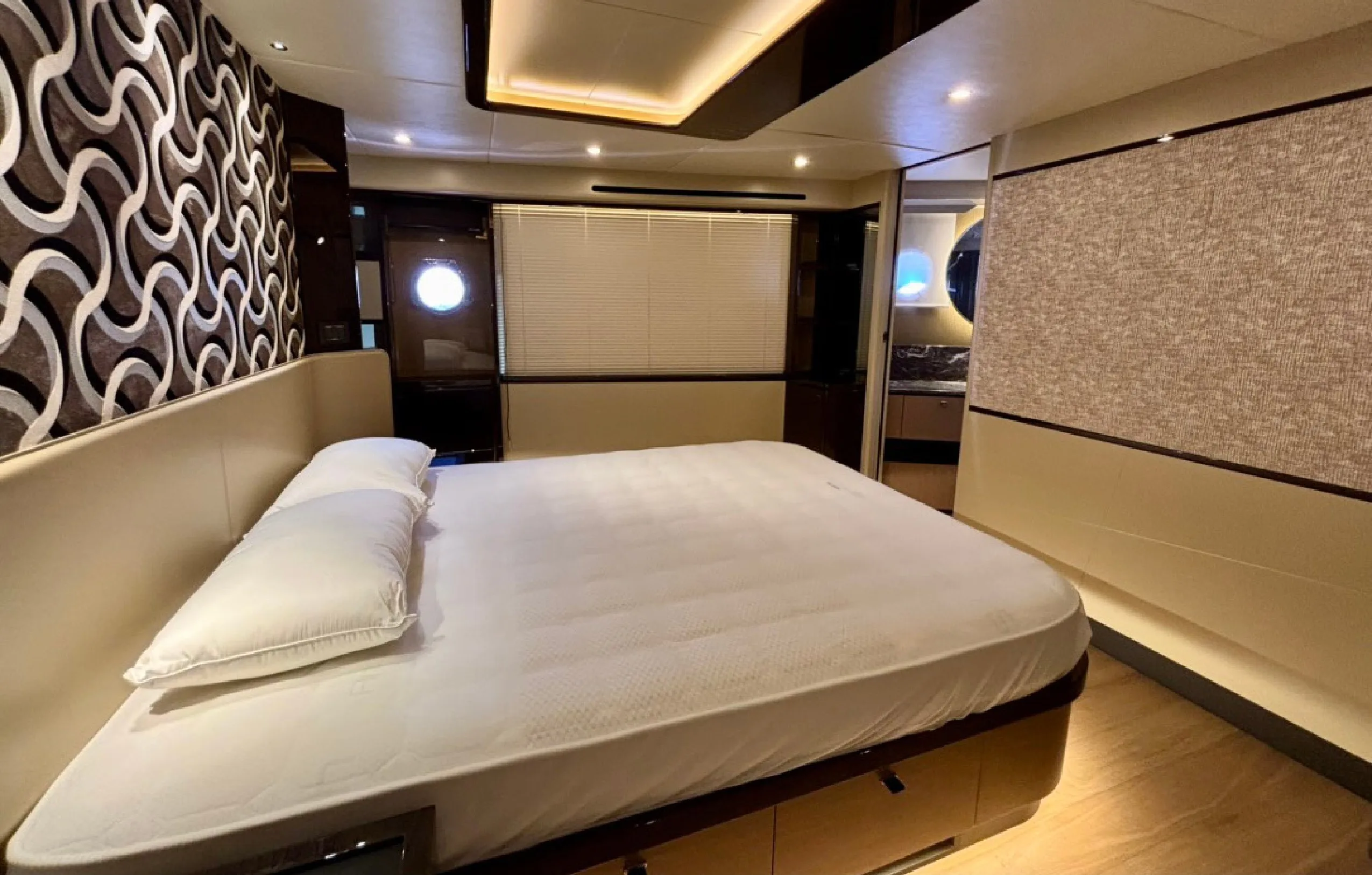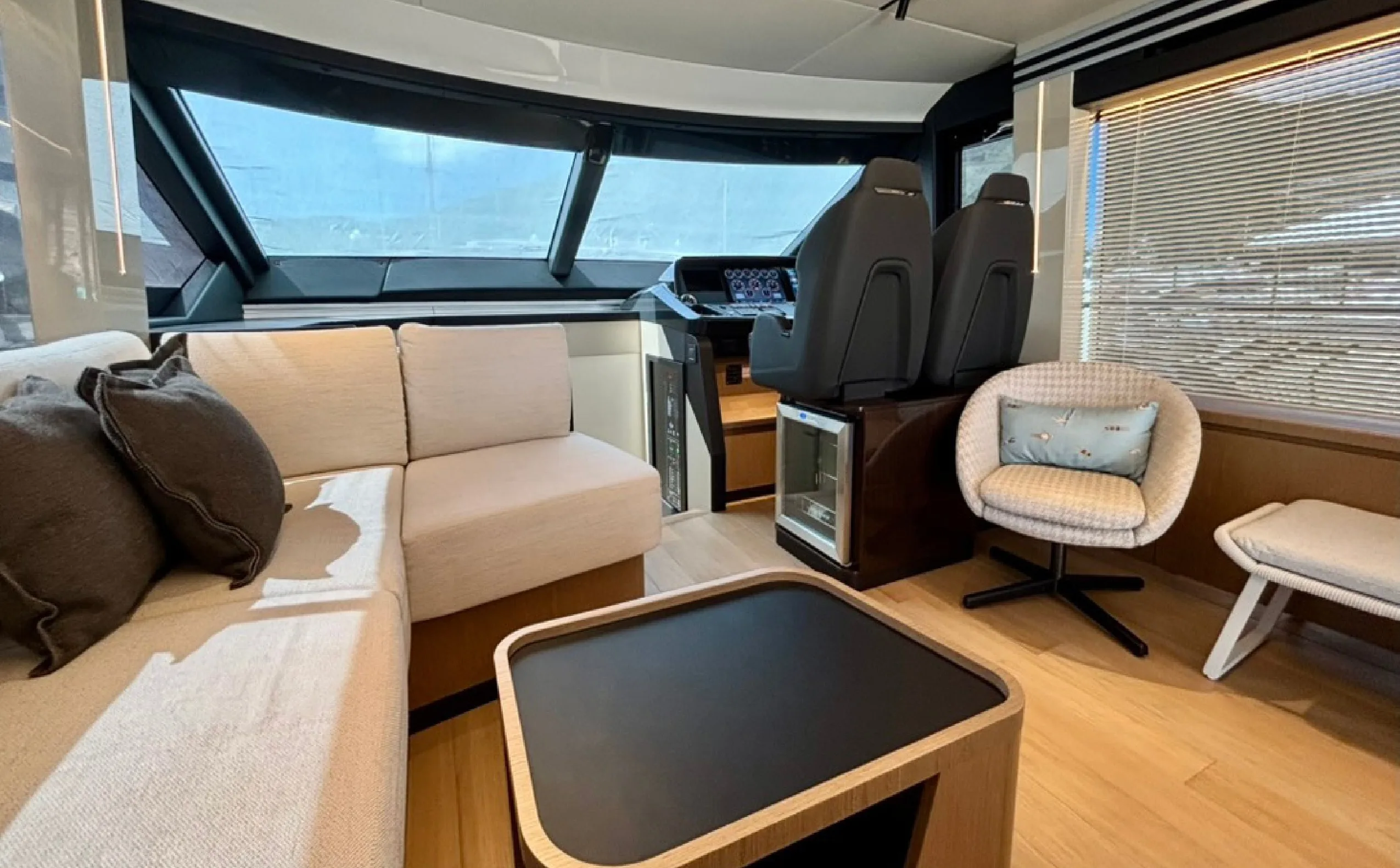 The 2022 Absolute 60 Fly embodies modern Italian elegance with a focus on space, natural light, and refined onboard comfort. Her sleek lines, expansive glazing, and seamless indoor–outdoor flow create a bright and inviting atmosphere throughout. The saloon features panoramic windows and contemporary furnishings, while the flybridge stands out as a signature space for open-air relaxation, hosting, and enjoying uninterrupted sea views. Multiple outdoor zones, including the aft cockpit and forward lounge, provide versatile spaces for both socialising and private retreat.