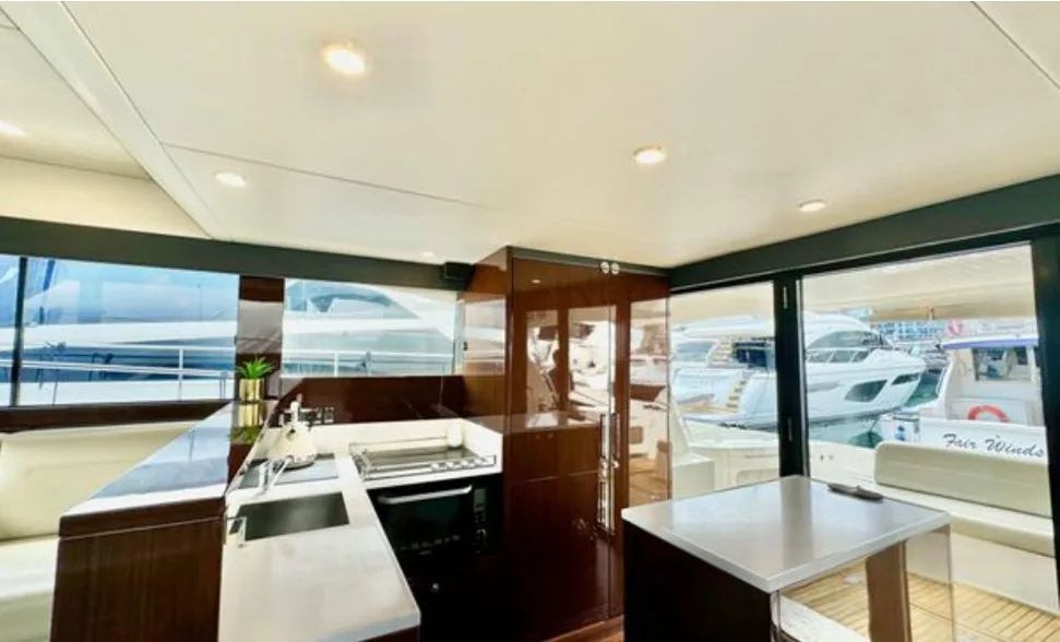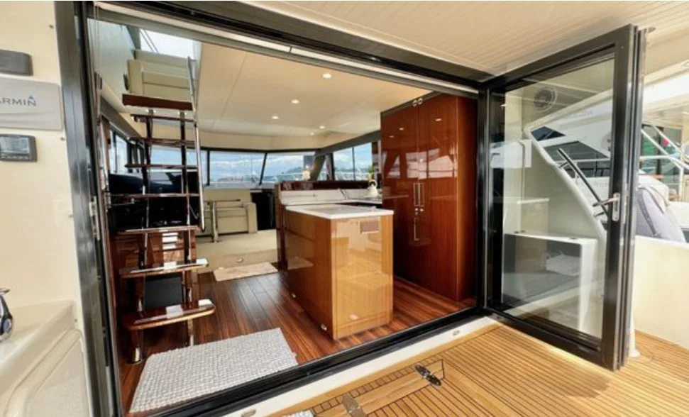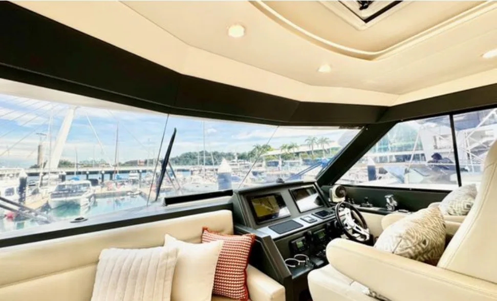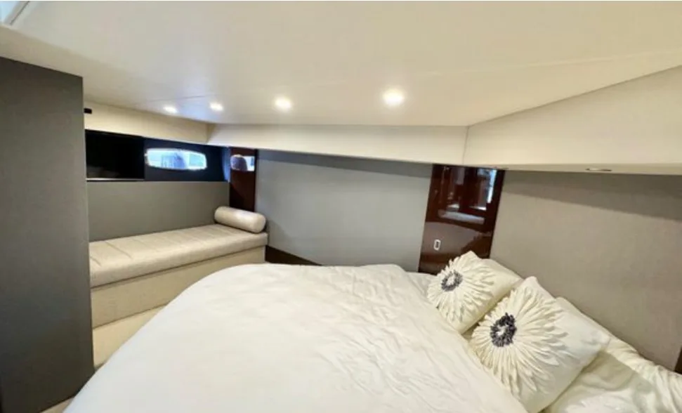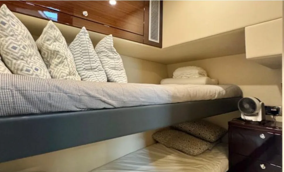 The Maritimo 51 blends offshore performance with luxury cruising, making it perfect for serious anglers and family adventures alike. Its spacious cockpit is ideal for fishing or entertaining, featuring rod holders, bait prep area, ample storage, and a hydraulic swim platform, while the enclosed flybridge offers panoramic views and comfortable seating. Inside, the yacht boasts a 3-cabin, 2-bathroom layout, including a full-beam master, VIP cabin, and twin guest cabin, delivering comfort, style, and versatility for unforgettable offshore or coastal getaways.