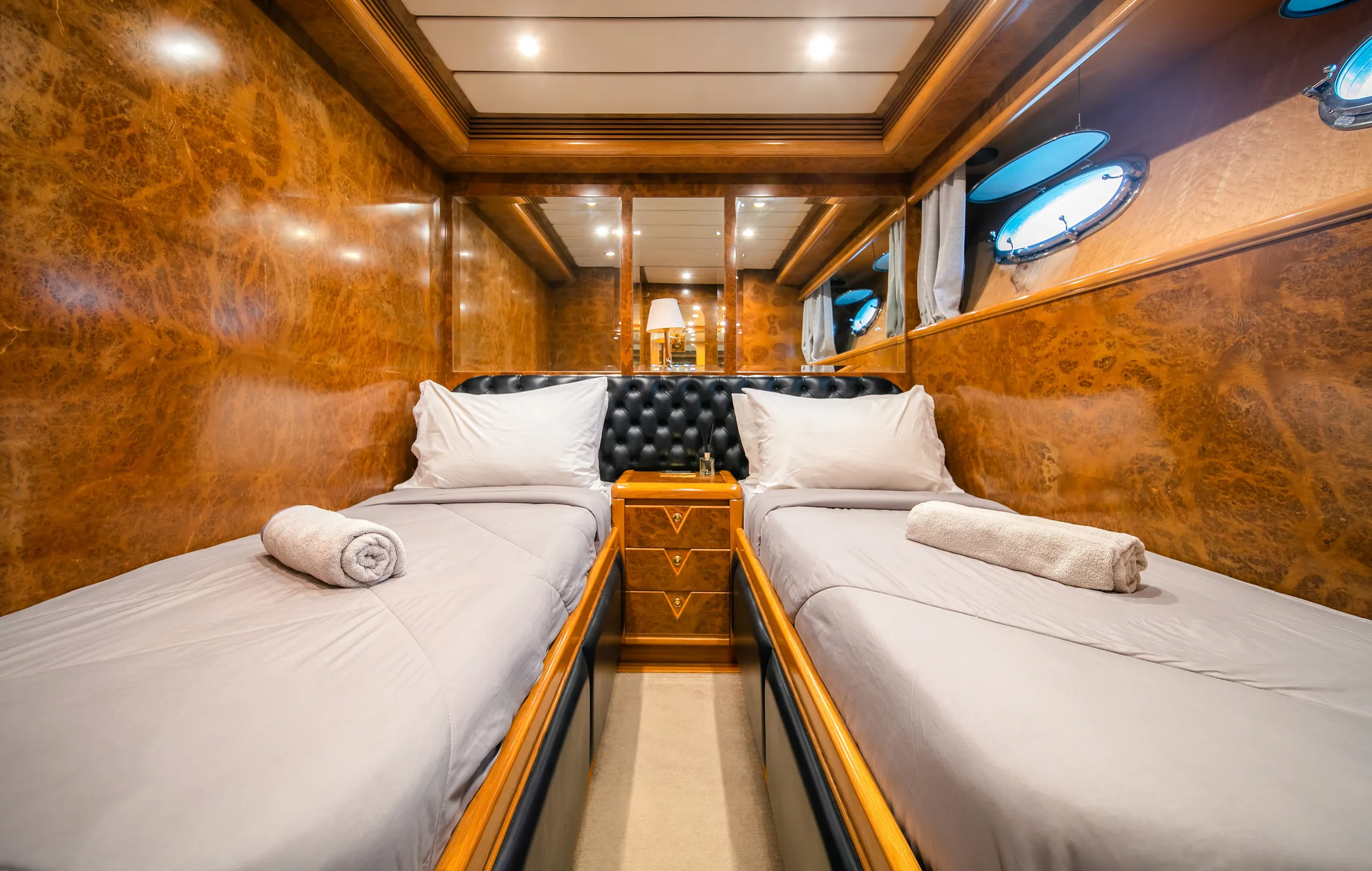 overnight in 4 beautifully appointed cabins, with additional quarters for 5 crew
