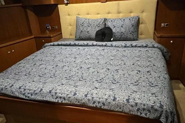 Inside, the yacht offers a spacious saloon, a master cabin with en-suite, plus two guest cabins — all equipped with air-conditioning and premium Miele appliances. Multiple fridges and freezers, including a dedicated fish freezer on deck, make it ideal for extended voyages.