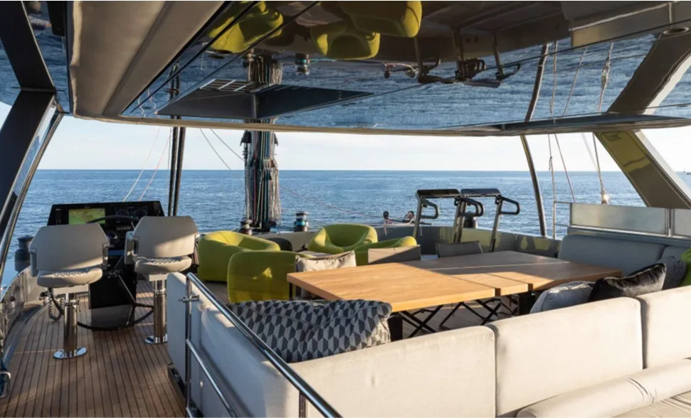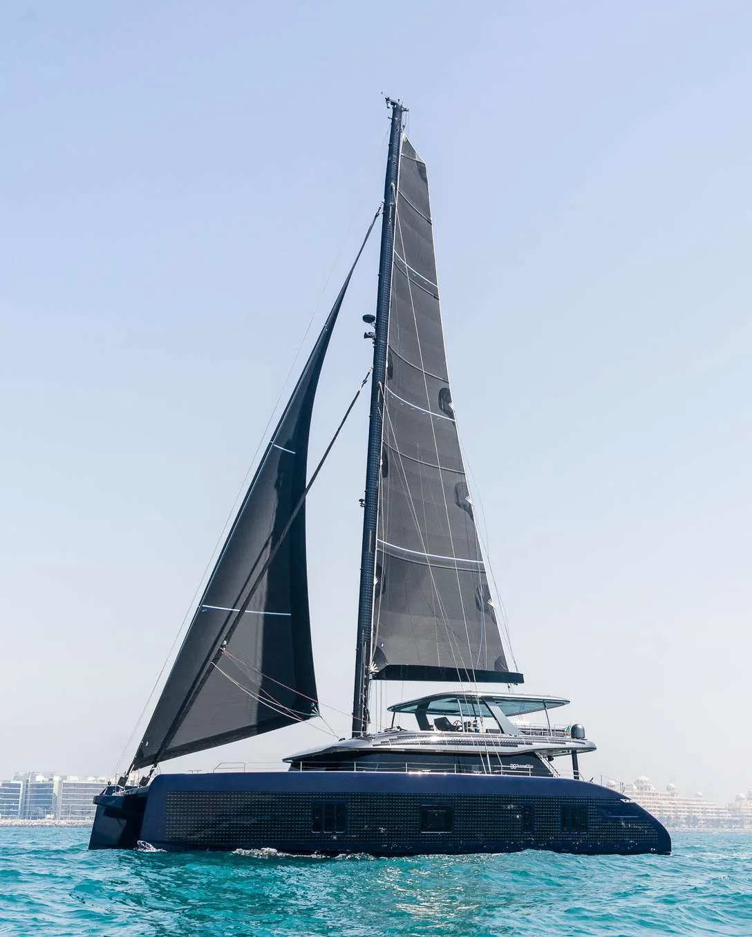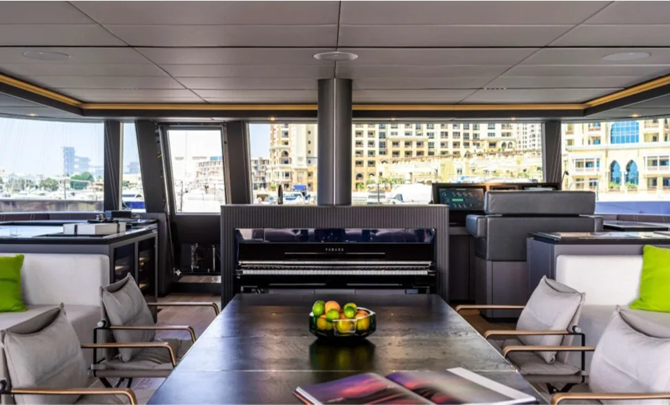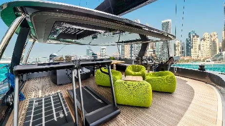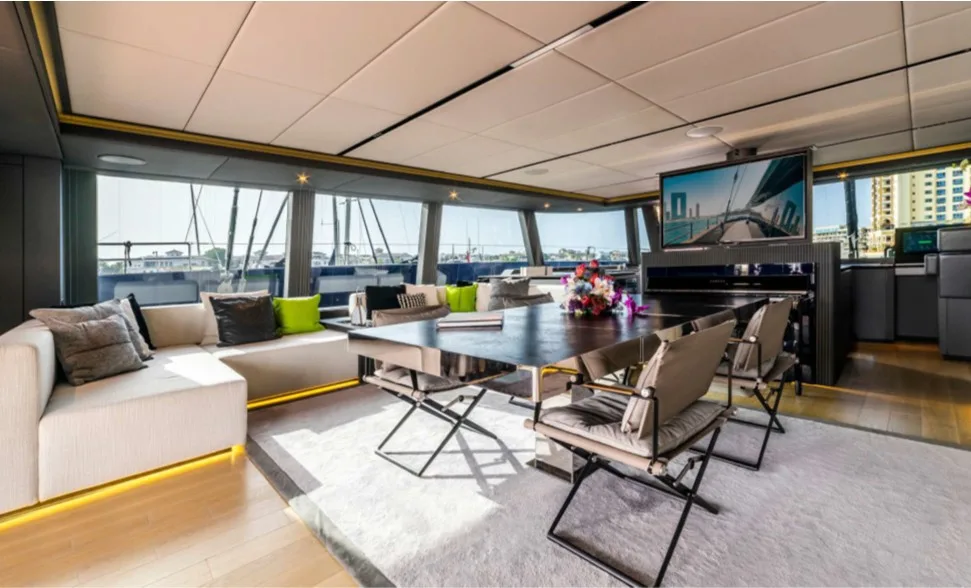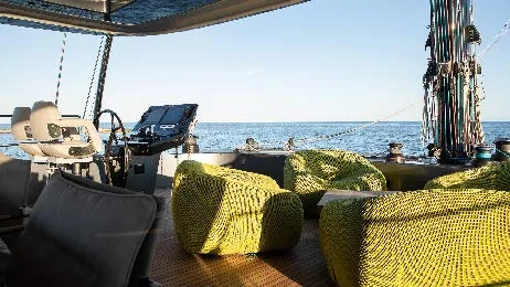 The Sunreef 80 Eco – Marie Joseph is a luxury catamaran built by Sunreef Yachts, combining modern elegance with eco-friendly technology. Powered by twin 180 kW electric motors, it offers smooth and quiet cruising up to 12 knots. With a spacious main salon, a luxurious master suite, four guest cabins, and generous outdoor areas including a flybridge and aft deck, Marie Joseph delivers exceptional comfort and style for a truly sustainable luxury yachting experience.