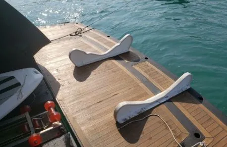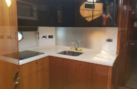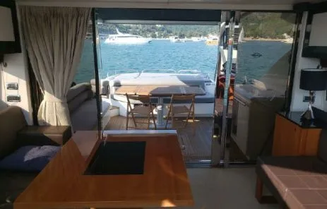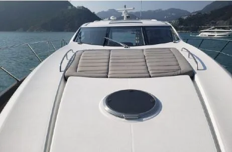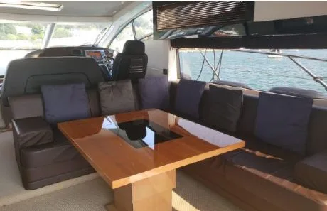 A classic showcase of Sunseeker’s design ingenuity, the Predator 64 offers versatile accommodation, premium furnishings, and a layout that suits every lifestyle. Whether entertaining guests in secluded luxury or enjoying the exhilarating open-air experience from the sliding saloon roof, this yacht delivers. At full throttle, she reaches up to 35 knots, powered by twin MAN V8-1200 engines (2,400 hp total), taking you swiftly and comfortably to your destination. Despite the speed, the renowned Sunseeker hull design ensures a smooth, soft ride, allowing guests to enjoy the sunpads both underway and at anchor.