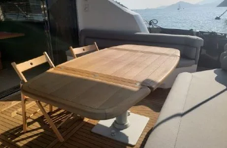 She is in very good condition, and her larger MAN V8-1200 engines offer thrilling performance with only 1,110 engine hours (as of March 2022). The shaft-drive system is simpler and more economical to maintain. The knowledgeable owner has ensured timely servicing, and the long-serving full-time captain has maintained her exceptionally well.