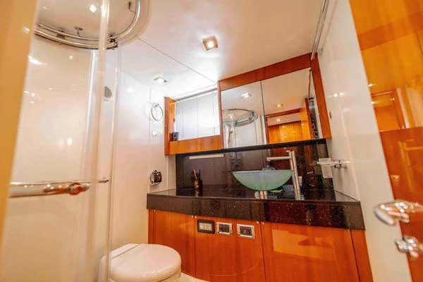The Predator 72 is a stylish sports cruiser offering luxury, speed, and comfort. Powered by twin MAN 1550 HP shaft drive engines, she cruises smoothly and can reach up to 36 knots.